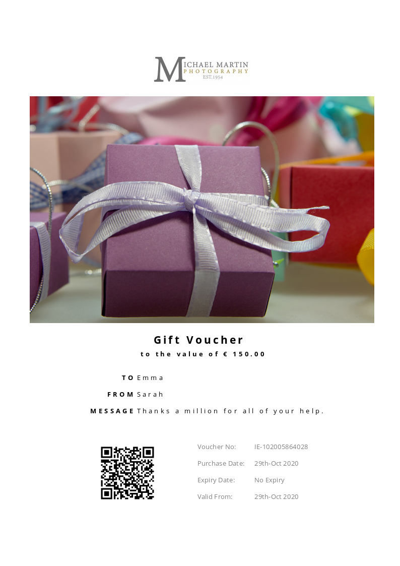 You can buy a gift voucher for an amount of your choosing(minimum 50 euro), simply enter the desired voucher value in the box and click select to move to the next step.